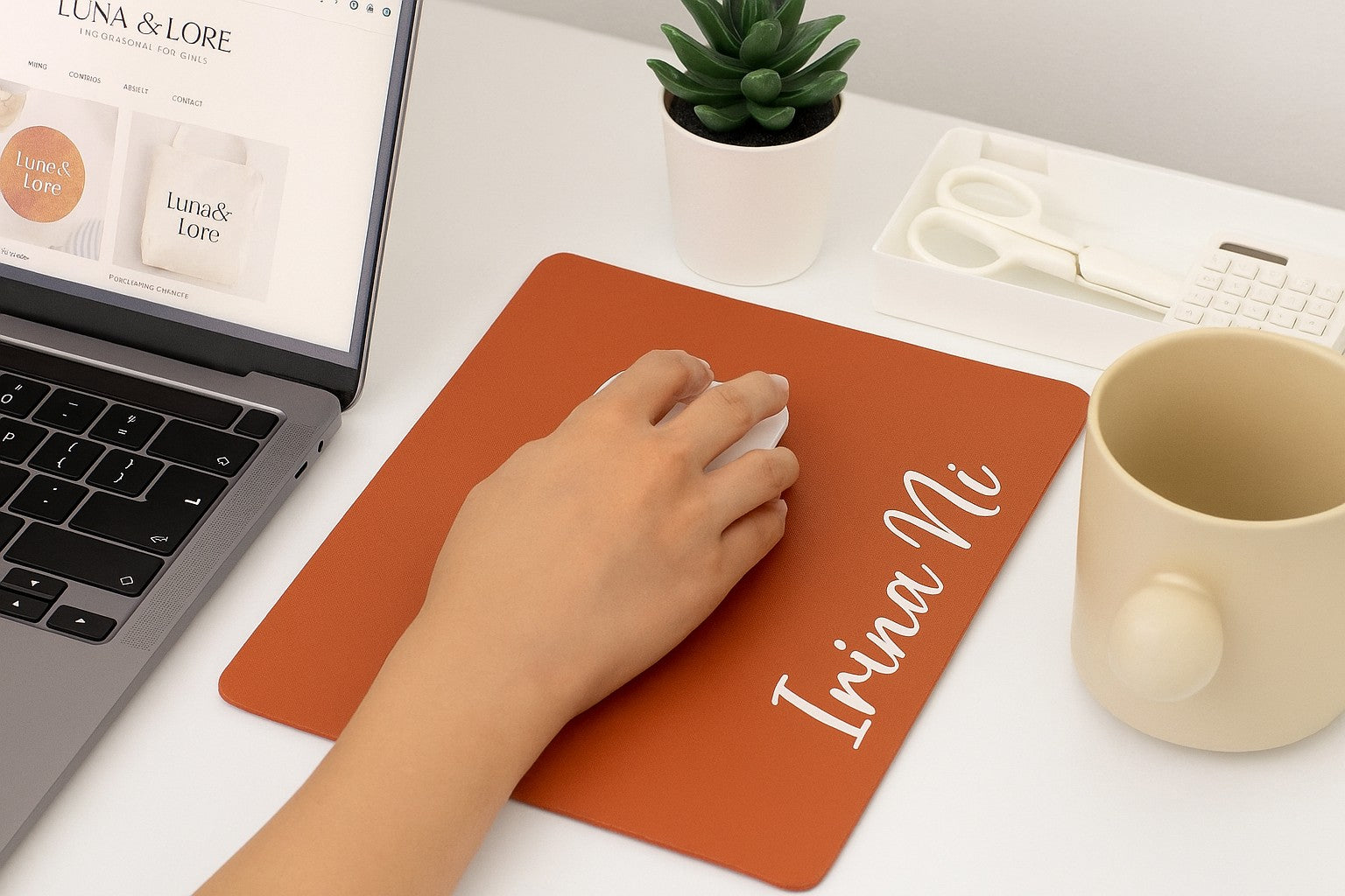 Add your name or custom text to make it truly yours — perfect for professionals, students, gamers, or anyone who loves a personalized touch. Whether it’s for your home office or as a thoughtful gift, this custom mouse pad combines elegance, durability, and personality in one sleek design.