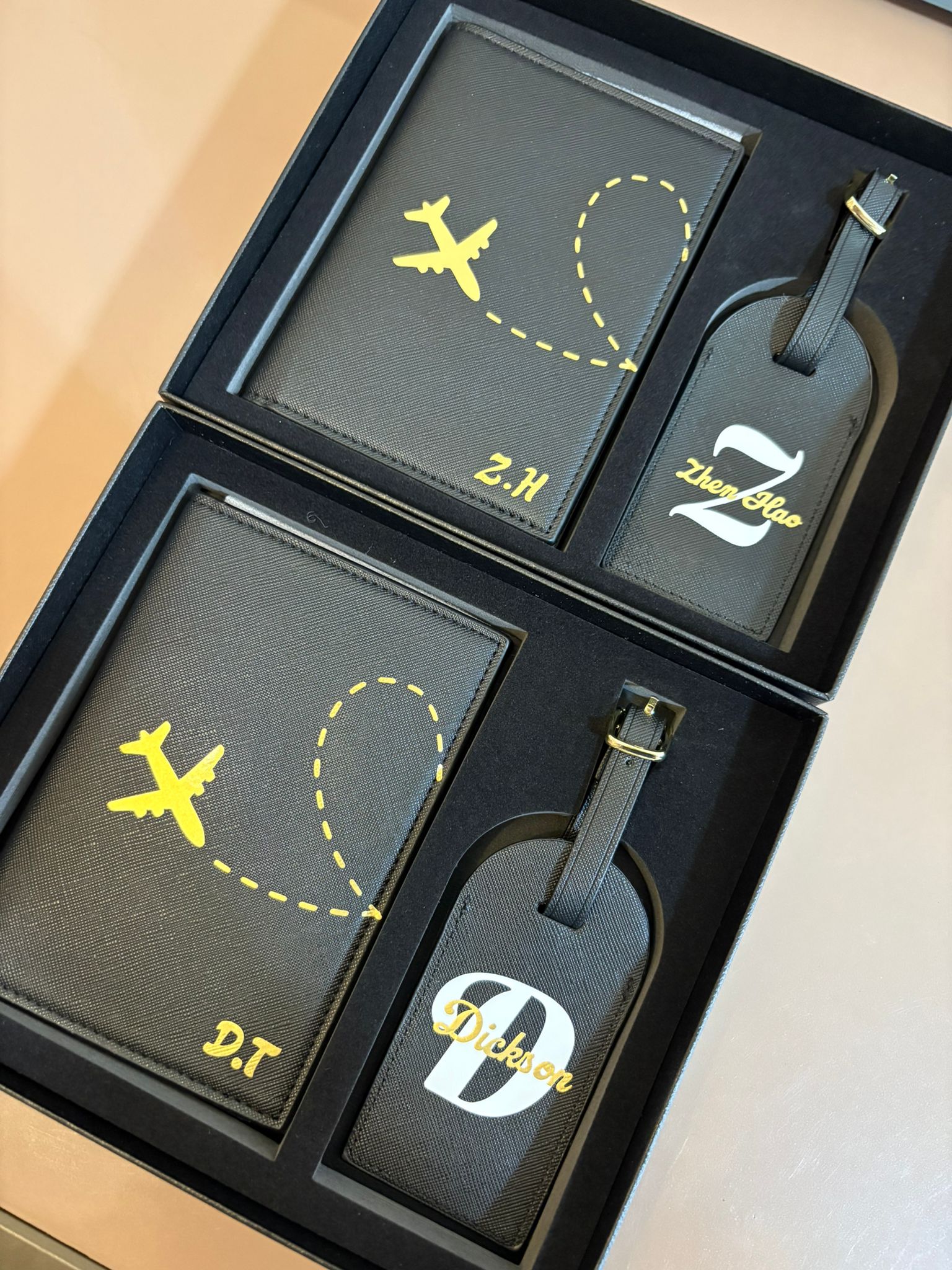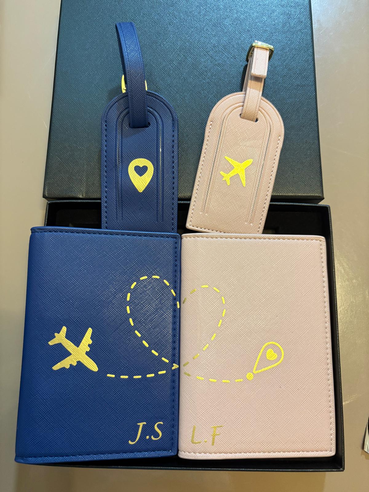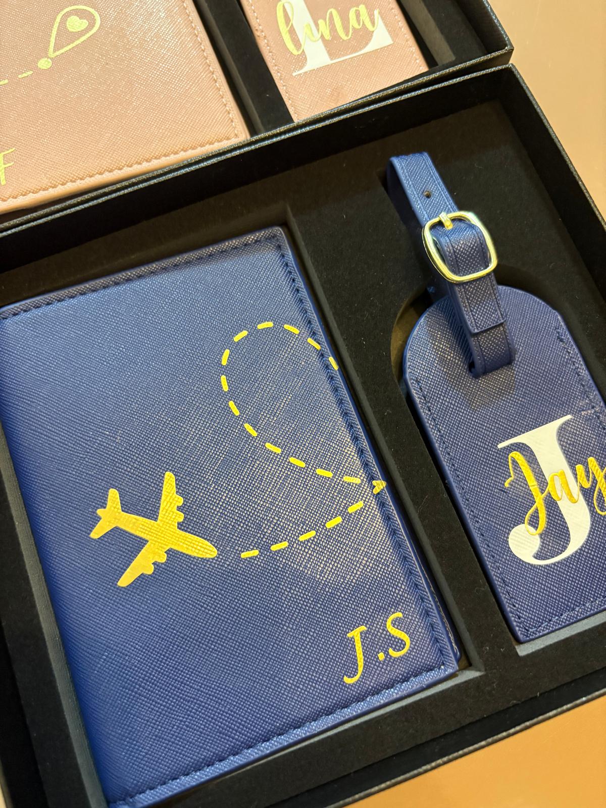 Make your travels uniquely yours with our customized passport holder and luggage tag set. Designed for couples, best friends, or solo adventurers, this duo combines functionality with a personal touch.